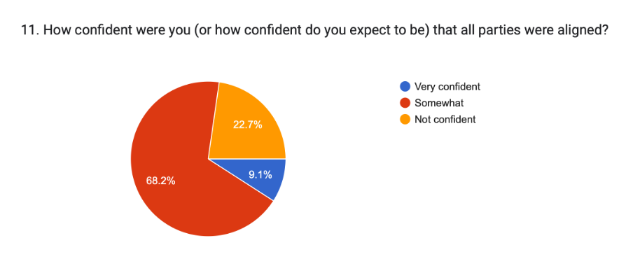 Fragmentation further reflects a low in confidence and limited visibility. Half of the respondents reported having no real-time visibility of project progress or costs, and 68% were not confident that all parties were aligned. Miscommunicationmost frequently occurred around design changes (77%) and project timelines (73%), pointing to systemic gaps in information sharing and decision-making processes.